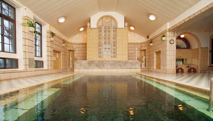 建物は森山松之助が設計し、1928年(昭和3年)に竣工した洋風建築(様式的には特定しがたいが、ゴシックリバイバルもしくはロマンティックリバイバルに近い)である。2011年(平成23年)6月20日に浴場、会館、渡廊下の3棟が国の重要文化財に指定された。